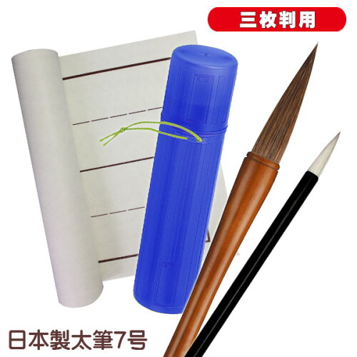 【ママ割エントリーでP5倍】書初めセット 日本製木軸太筆 7号 小学生/中学生 筆筒/下敷きケース付き 罫線入下敷き 三枚判用